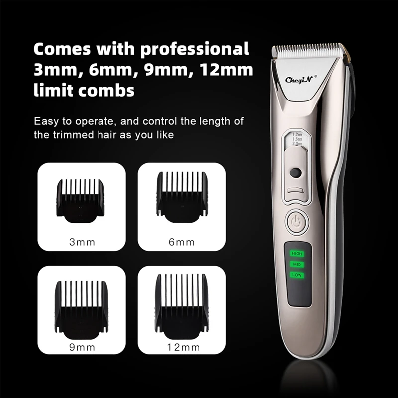 5. Поставляется с профессиональными гребнями 3 мм, 6 мм, 9 мм, 12 мм, просты в эксплуатации и контролируют длину подстриженных волос, как вам нравится.