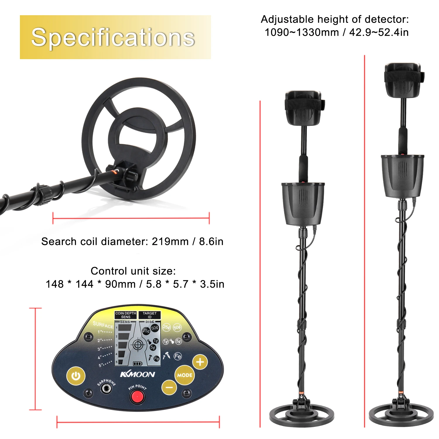 Регулируемая высота: детектор может быть установлен на наиболее удобную высоту, регулируемая длина подходит для детей и взрослых.