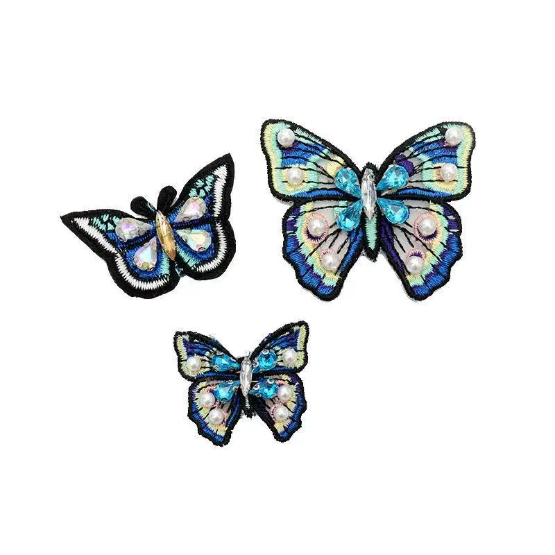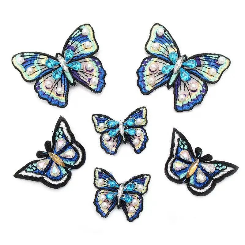 1 шт. вышитая бисером Бабочка патч аппликация Синие Бабочки патчи для одежды обувь аппликации патчи