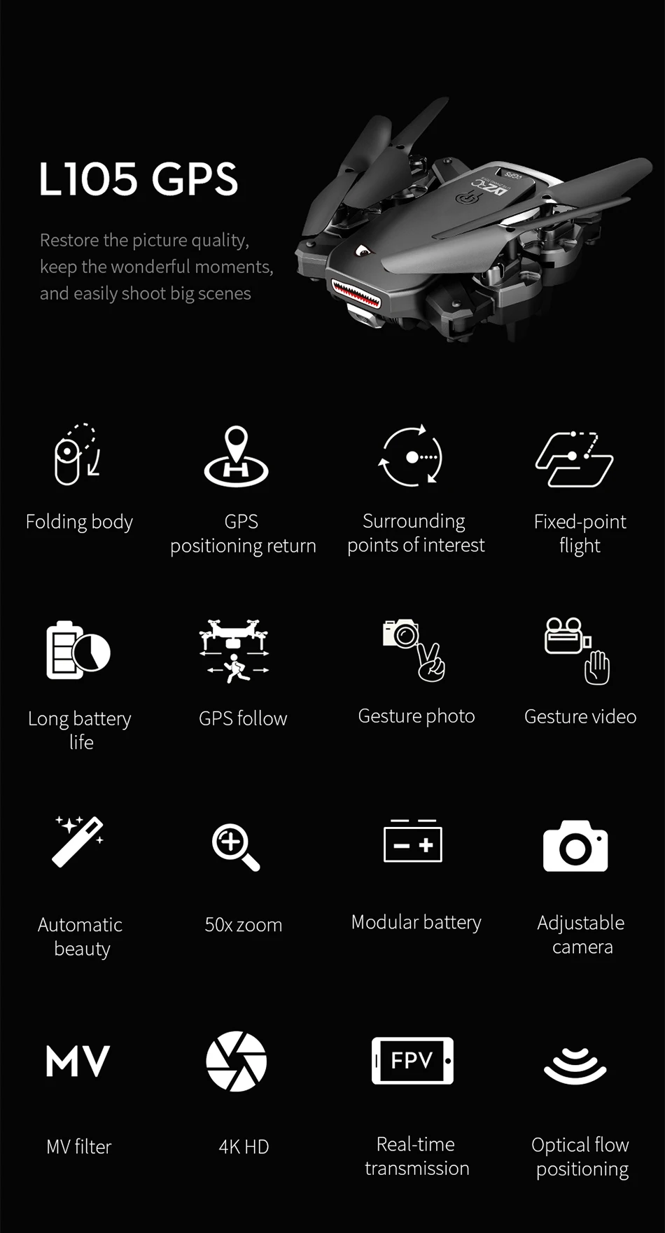 2021 New L105 GPS 4K HD Camera Drone Wifi 25min Flight Time Brushless Motor Quadcopter Distance 1km Professional Drones
