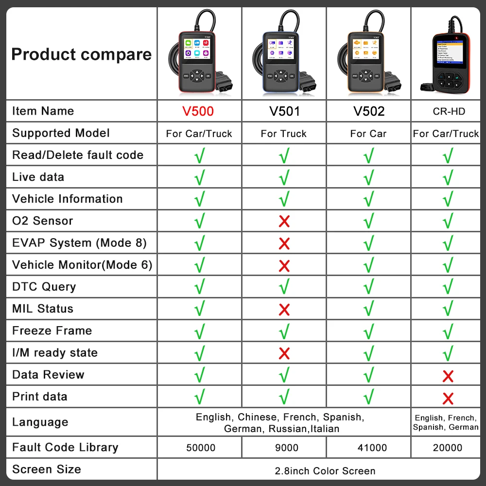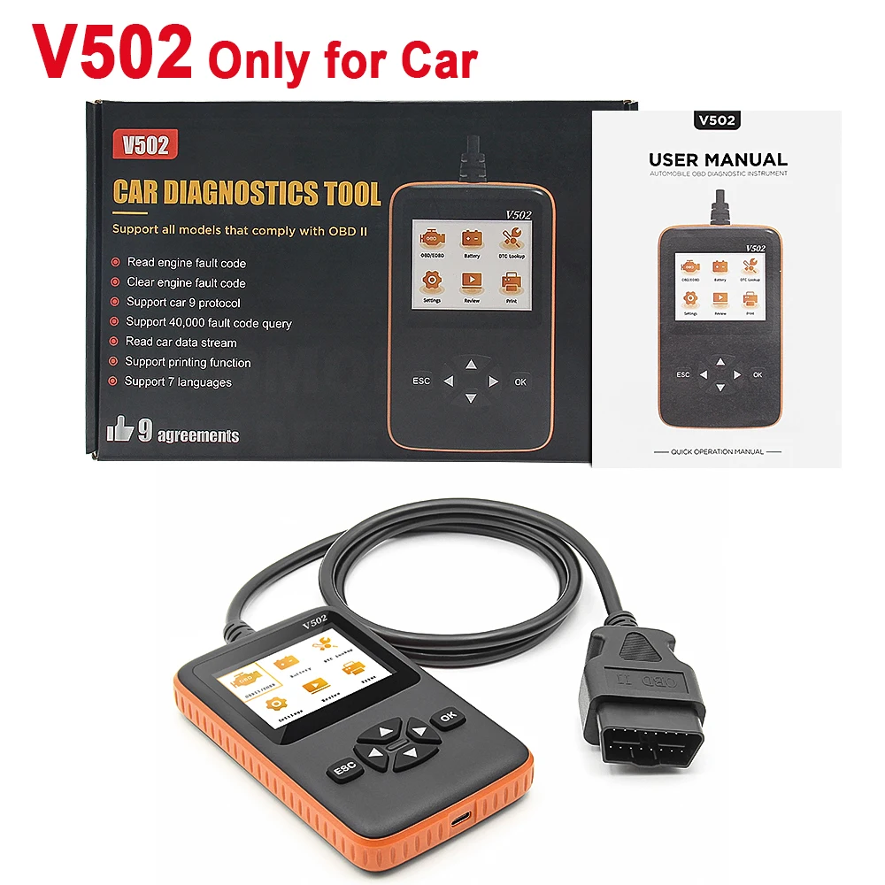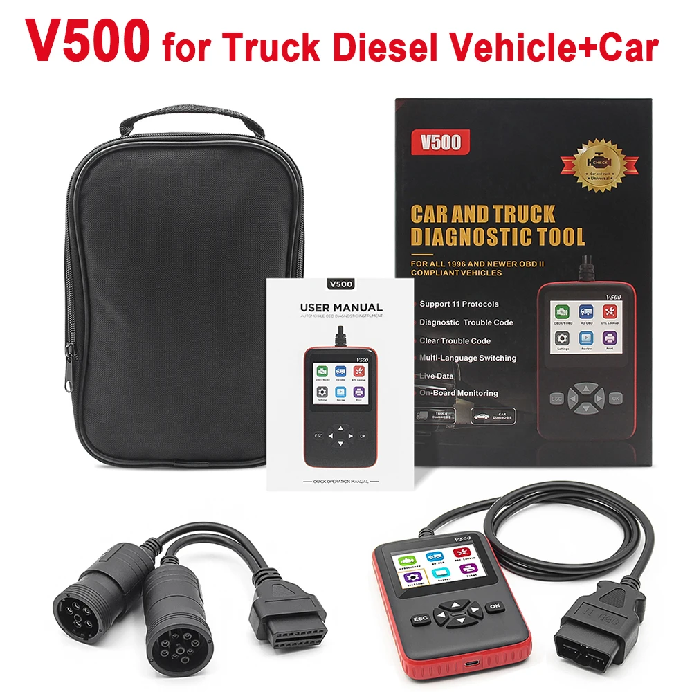 This product is a two-in-one diesel-automobile code reader that supports nine standard protocols of OBDI/EOBD and is compatible with common truck protocols, such as SAE J1939/SAE J1708 and other common truck protocols. Plug and play, it can quickly read the fault information and vehicle parameters of trucks and cars. It is a more comprehensive fault diagnosis instrument.