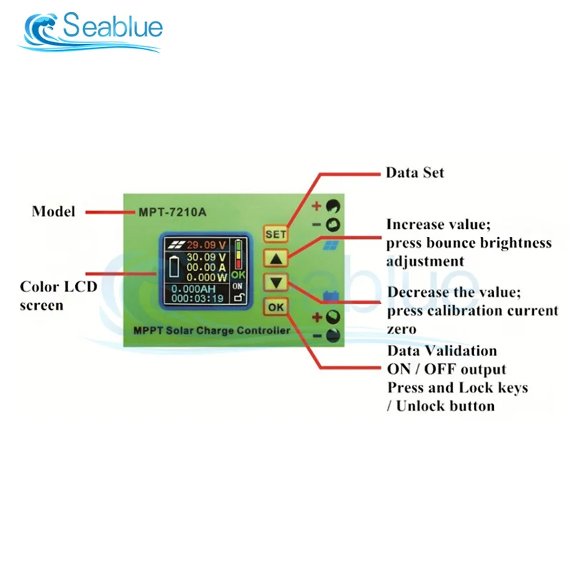 2. Контроллер использует 1,8 дюйма 160 × 128 с высоким разрешением полноцветные ЖК-дисплей дисплей, которая отражает информацию интуитивно и интерфейса дисплея прекрасен. Он может эффективно считывать рабочее напряжение солнечной панели, напряжение зарядки аккумулятора, зарядный ток, мощность зарядки и емкость аккумулятора. И время зарядки, ход зарядки и т. Д.