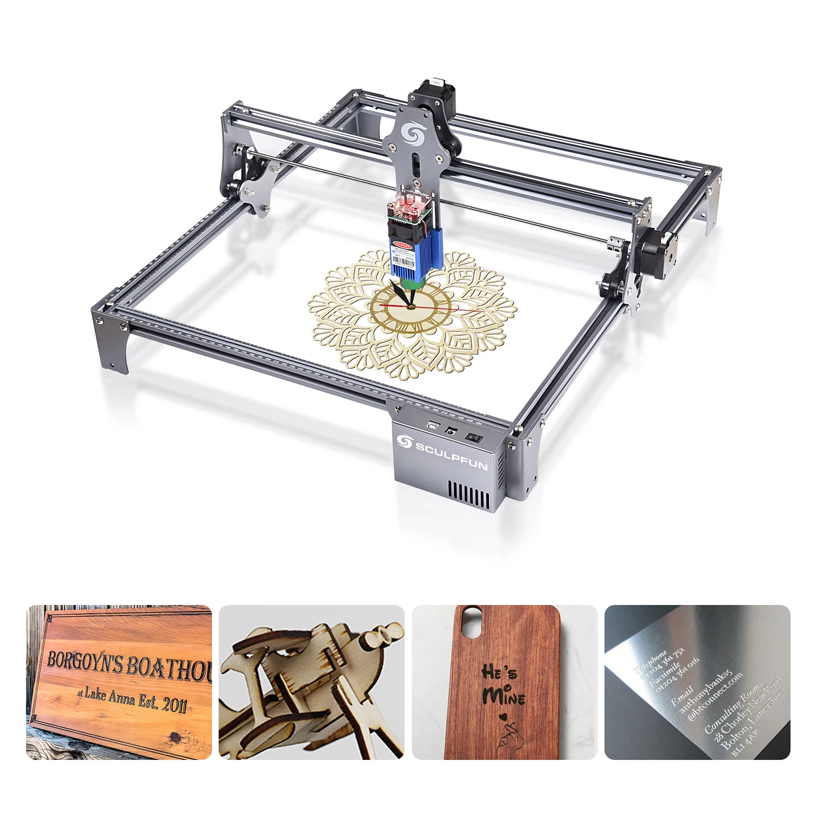 8. Угловая измерительная линейка: ось X и ось Y содержат точные масштабные линии, что удобно для быстрого измерения размера гравировальных объектов. 410x420 мм интервал гравировки большой площади может удовлетворить ваши различные потребности гравировки.