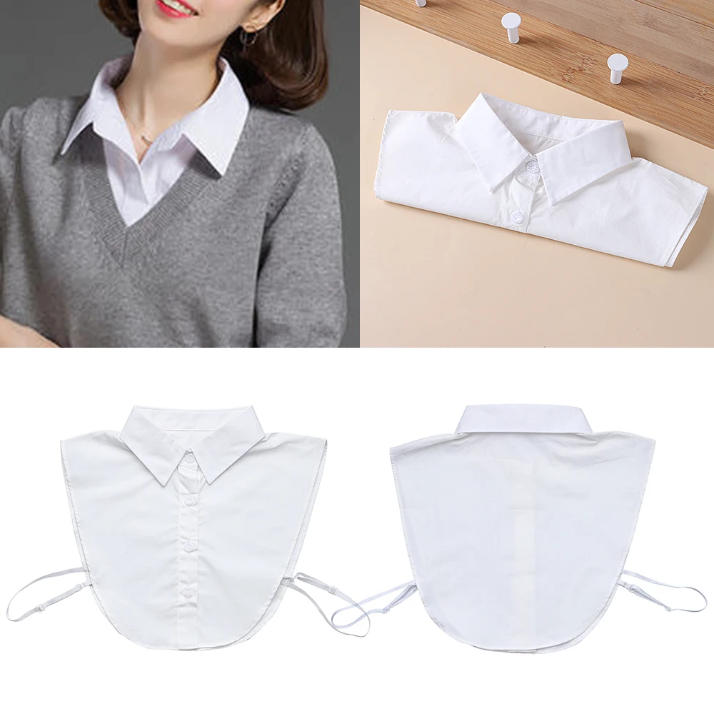 2021 белая черная винтажная хлопковая Однотонная рубашка с ложным воротником, съемный воротник, женская одежда, аксессуары, блузка с отворотом