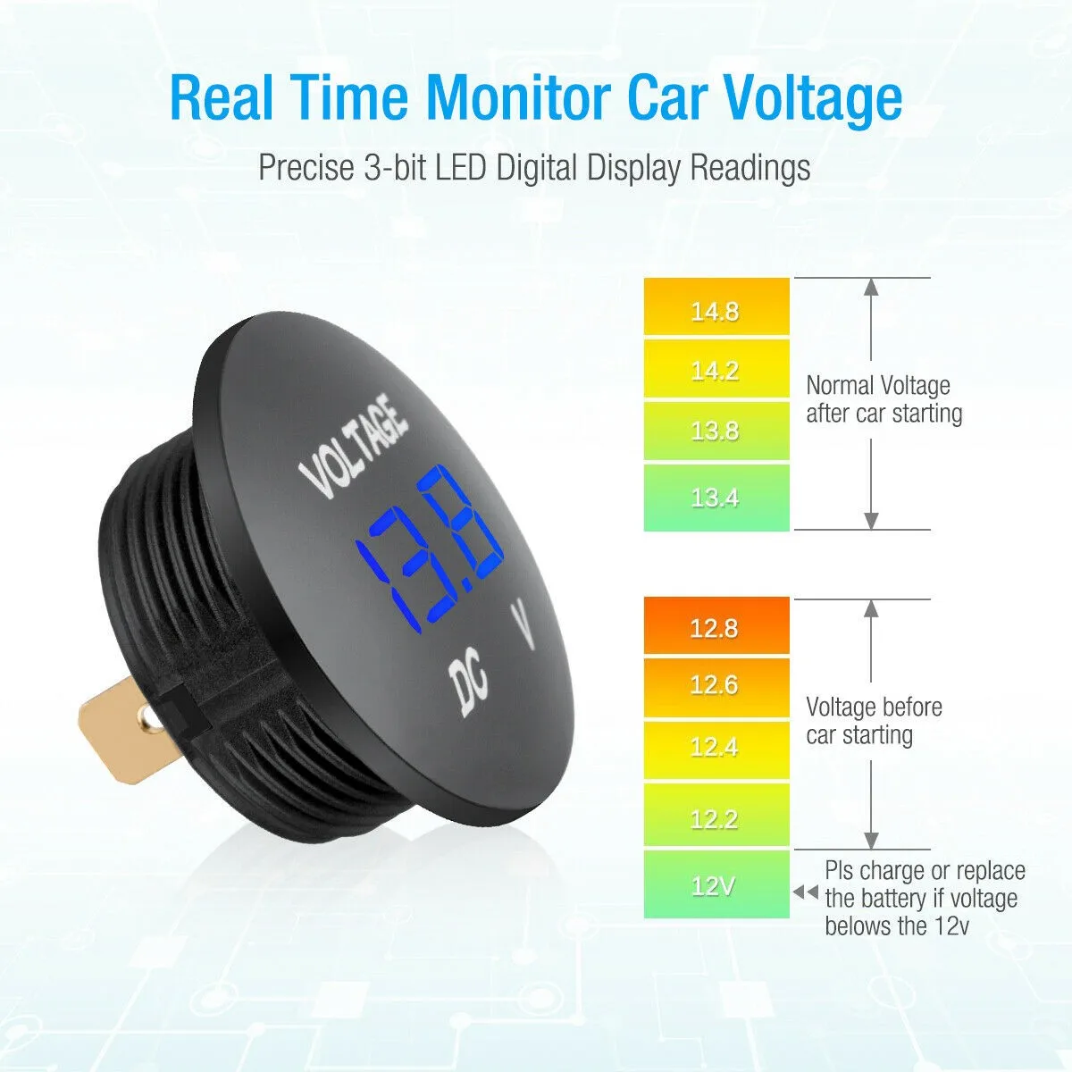 * Работает для детей возрастом от 12V-24V. Мини-размер и простота установки, отлично подходит для проверки напряжения.