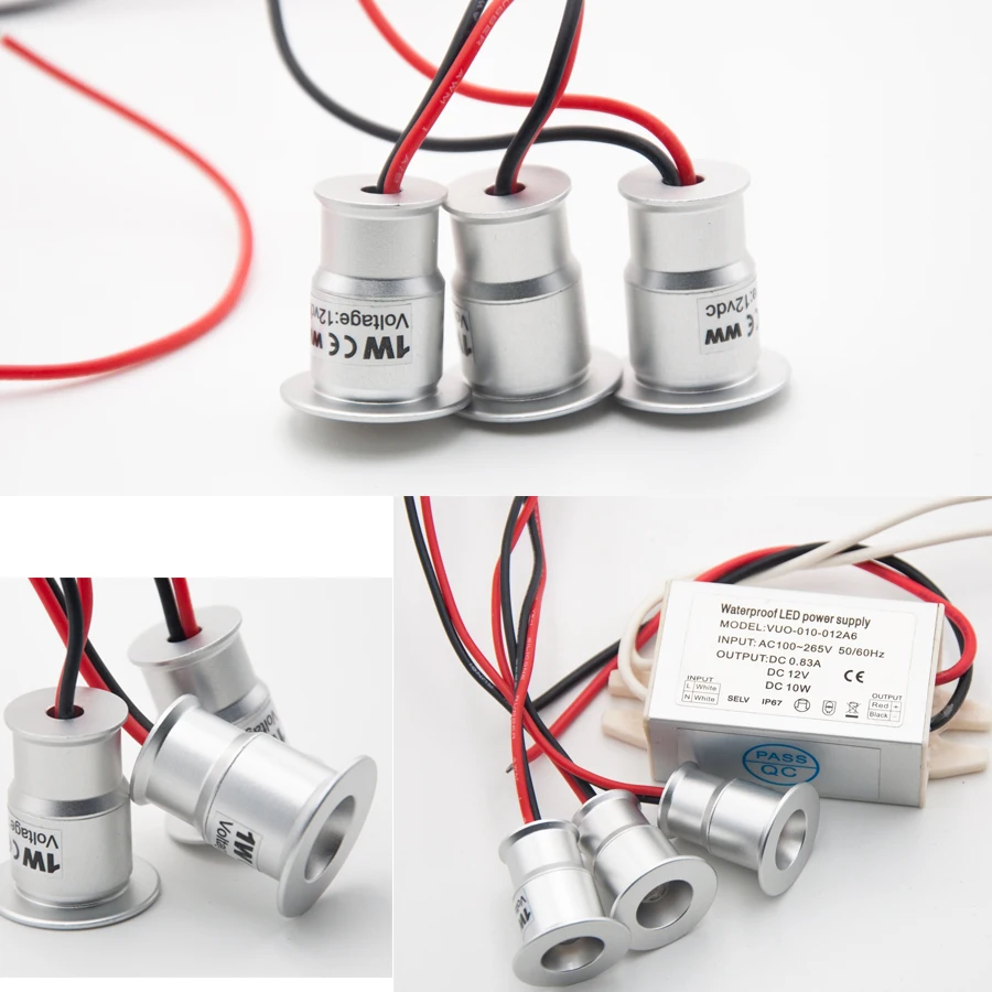 1W 12V Мини светодиодный светильник с регулируемой яркостью, IP65 на открытом воздухе внутренний прожектор ЛЕСТНИЦЫ шкаф лампа черный, белый цвет в серебряном корпусе с пятно САУНА ЛАМПЫ