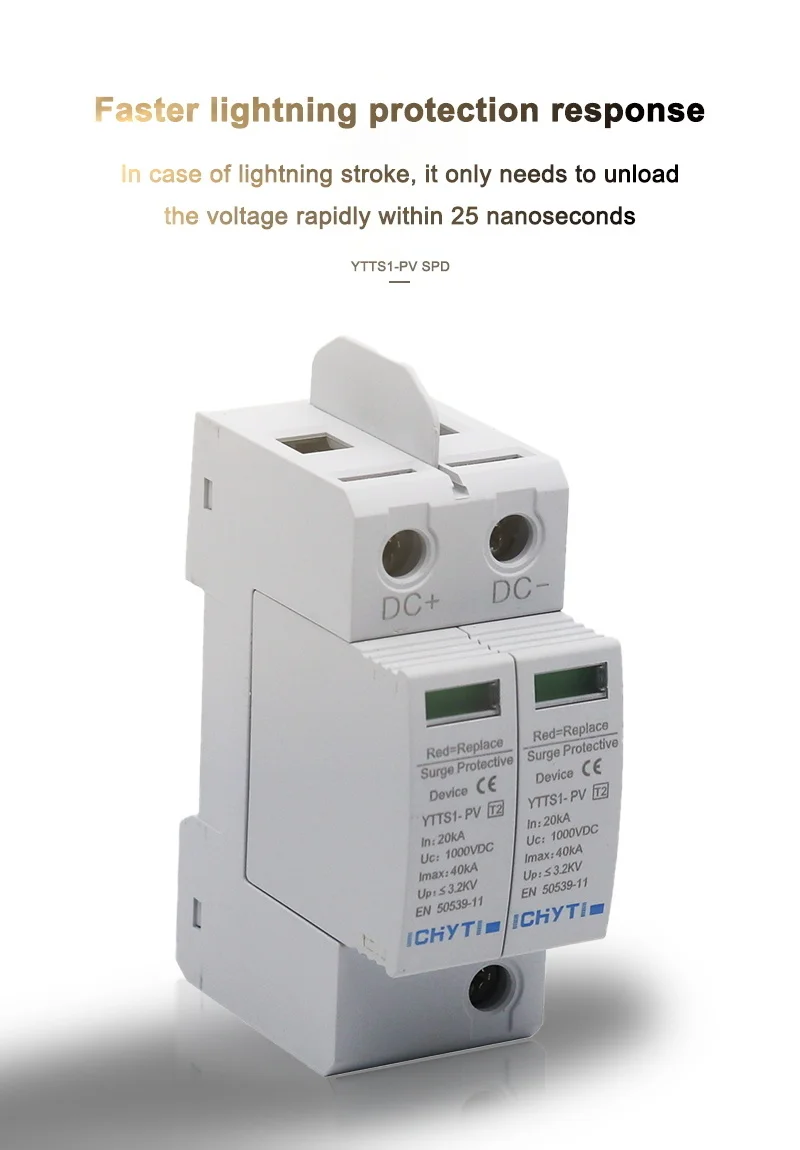 Устройство защиты от перенапряжения SPD DC 2P 600V 1000V 20KA ~ 40KA Защита от перенапряжения дом от перенапряжения на din-рейке Солнечная защита от перенапряжения