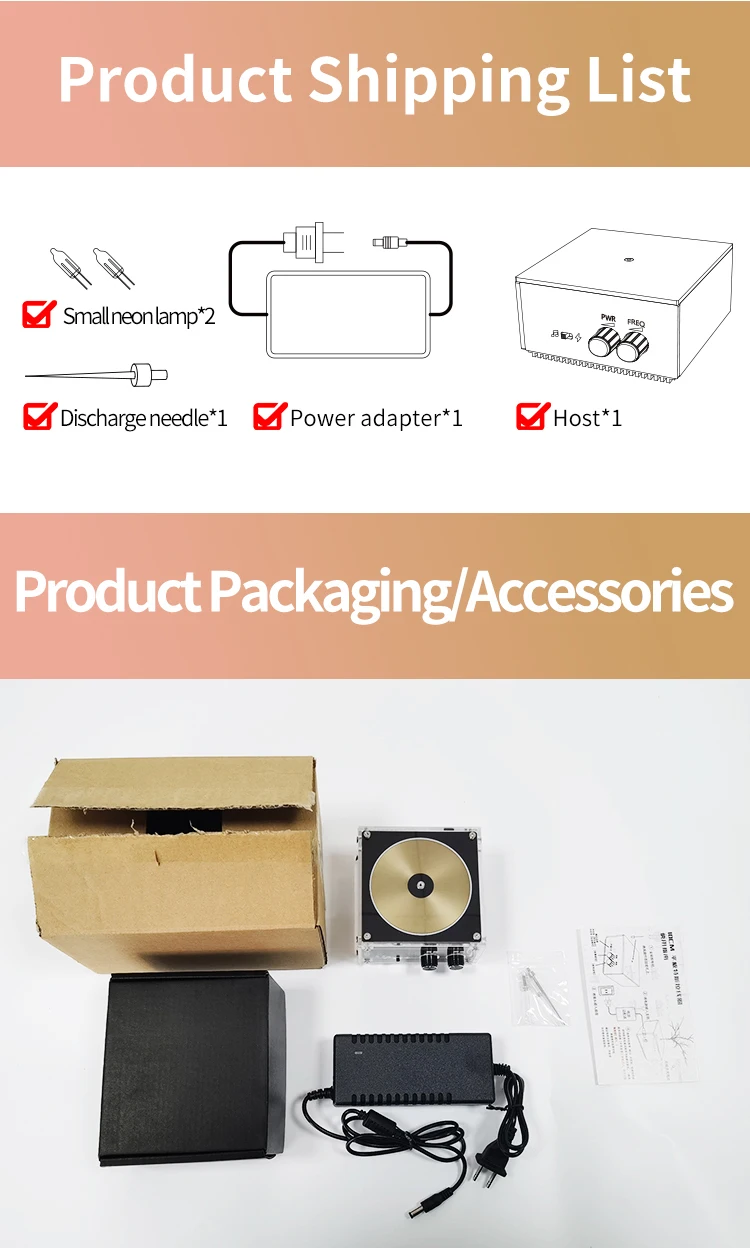 Наименование товара: катушка TeslaМощность Напряжение питания: 220VAC 50/60HzМощность: 0-100 ВтДлина Вспышки: 0-10 см (регулируется ручкой)Размер хоста: 106*106*61 ммРазмер логистики: 350*235*195 ммМатериально-Вес: 0,9 кг