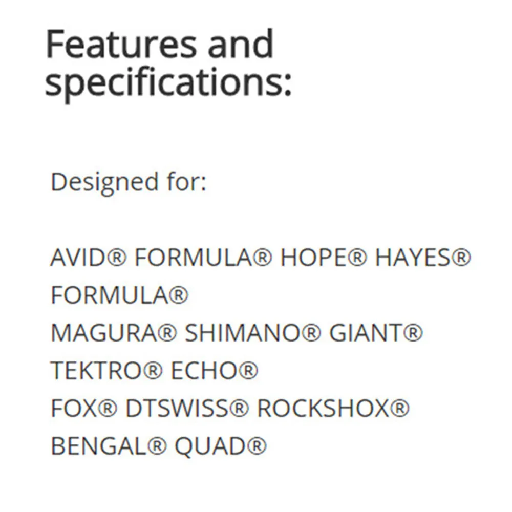 Набор тормозных колодок для велосипеда содержит антикоррозийный шприц и трубки из силиконовых шлангов, которые сделаны в Японии и достаточно сильны для нескольких операций с кровотечением.
