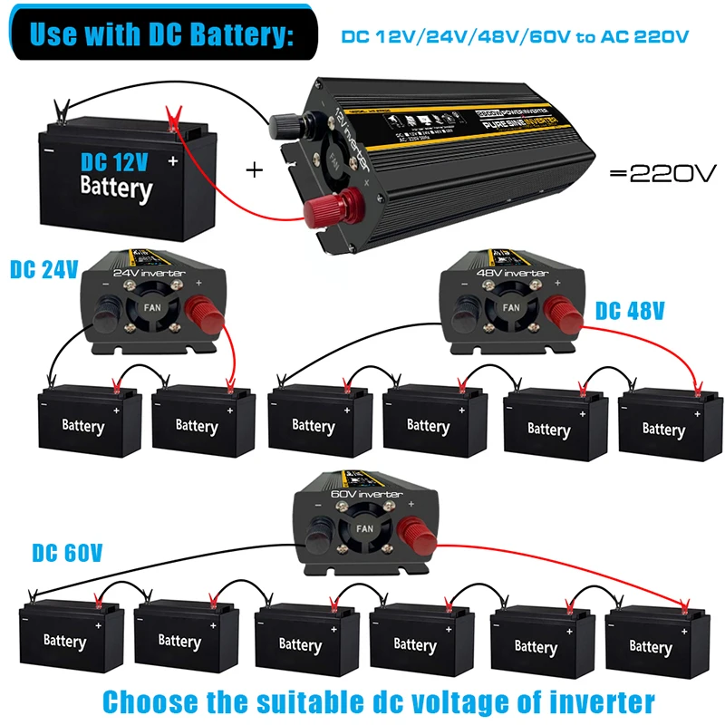 [Солнечная система с инвертором]Чистый синусоидальный инвертор + батарея + контроллер солнечного заряда + солнечная панель = одна Солнечная система. Вы можете получить питание от панели солнечных батарей, а контроллер солнечного заряда помогает контролировать зарядку и разрядку, аккумулятор помогает хранить энергию и инвертор поможет вам использовать солнечную энергию для устройства переменного тока. Это удобно и полезно, когда нет энергии или на открытом воздухе.