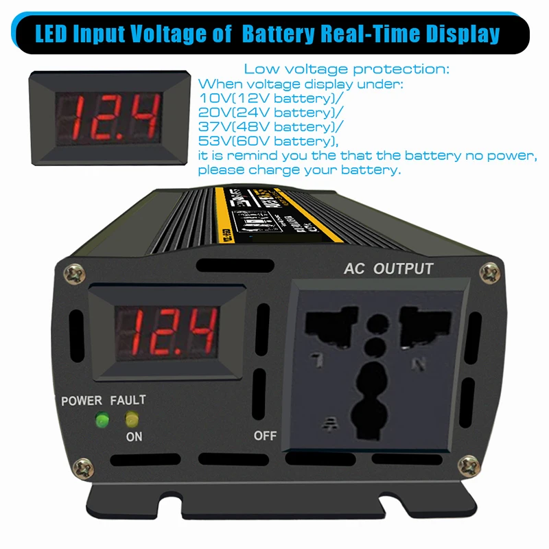 [Светодиодный экран напряжения]Светодиодный дисплей показывает входное напряжение аккумулятора в режиме реального времени и напоминает вам зарядить аккумулятор в соответствии с низким напряжением.