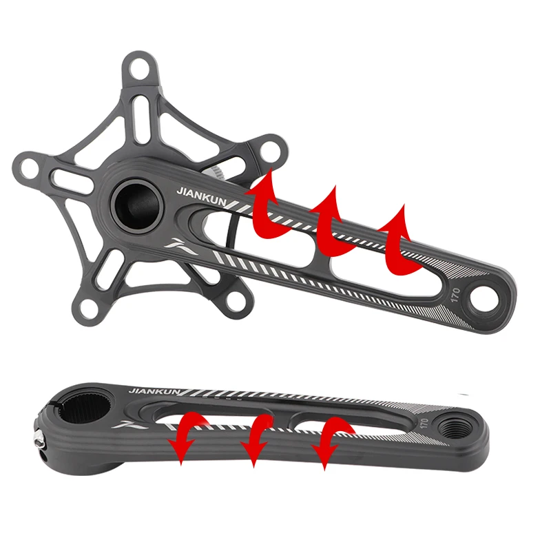 Кривошип изготовлен из высокопрочного алюминиевого сплава с технологией ЧПУ, анодирован и окрашен, выдолблен для уменьшения веса. Обладает легким весом и высокой износостойкостью; Пятиоборотная переходная деталь Съемная (после разборки это спецификация GXP).