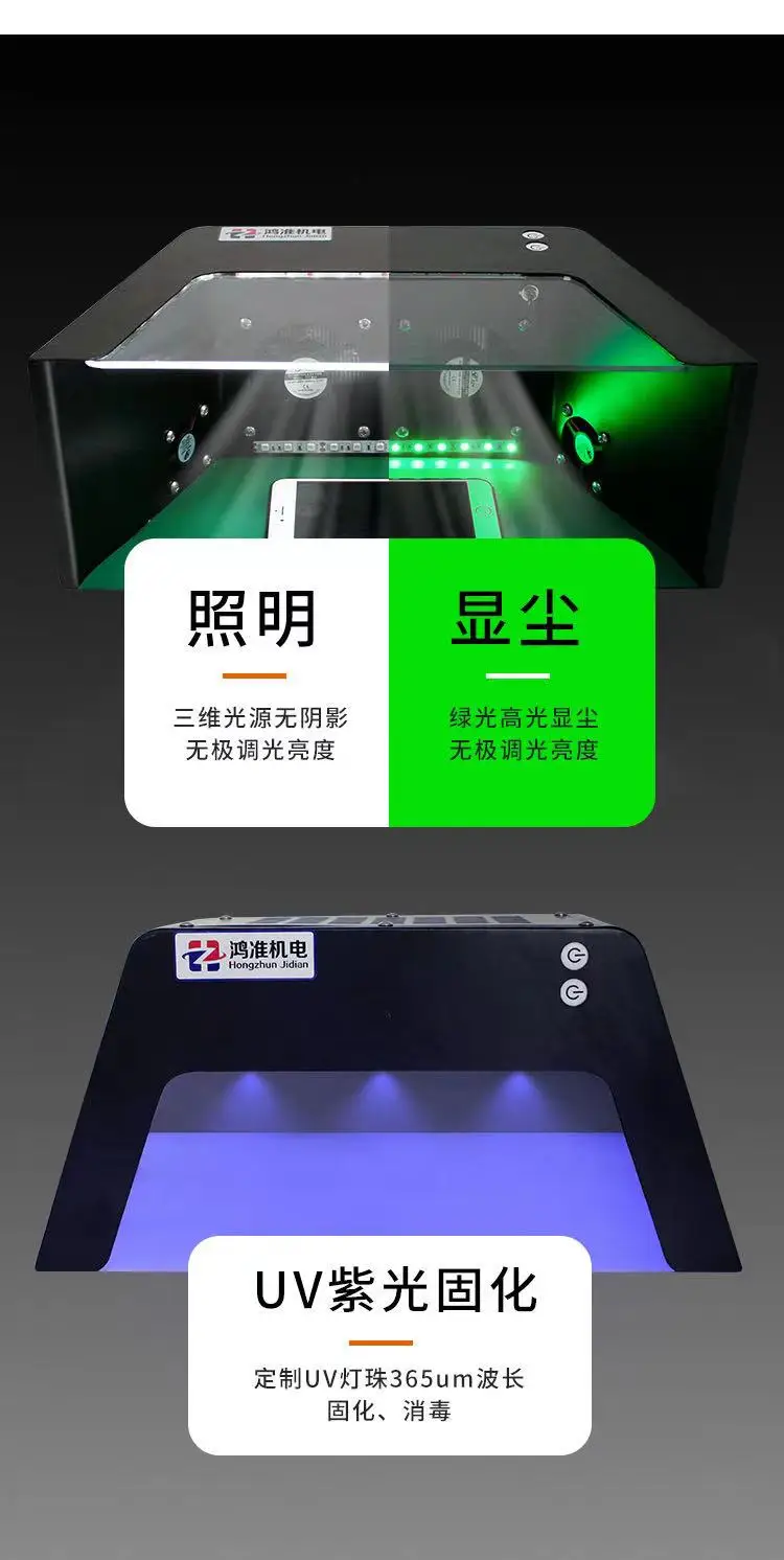 1.Isolate dust removal operation, UV dust lamp, strong ventilation, no longer have to worry about dust and film failure when you stick the film, waste the film, and increase the filming time, improving work efficiency.