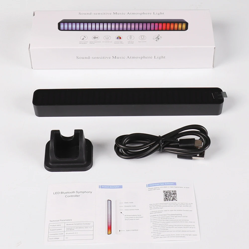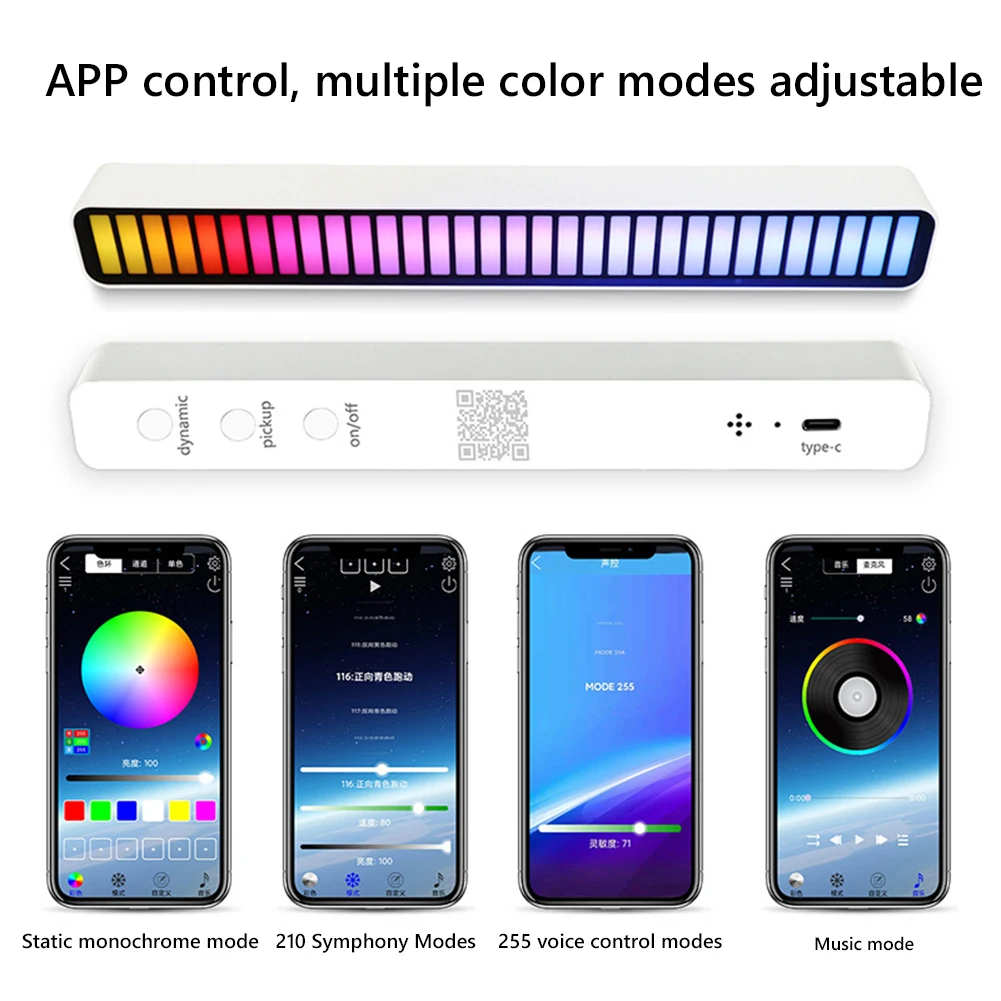 Type-C перезаряжаемый пульт управления с помощью приложения RGB цветная трубка 32 светодиодный звукосниматель с активированным звуком Ритм Светильник музыкальная атмосфера окружающая лампа бар для автомобиля Вечерние