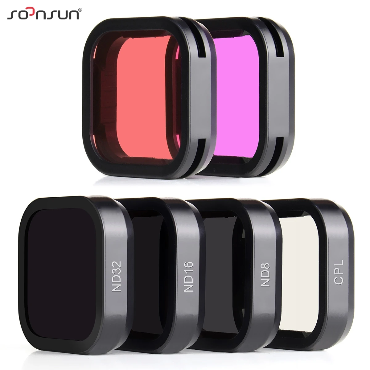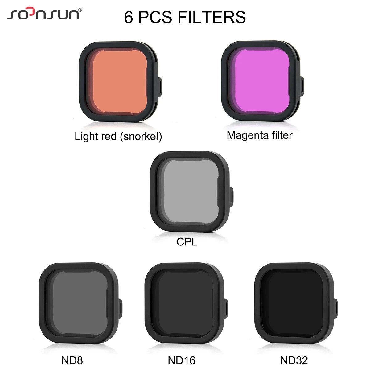 Комплект фильтров SOONSUN CPL, ND8, ND16, ND32, фильтр для дайвинга для GoPro Hero 10 Hero 9 Black Go Pro 9 10 nd фильтр аксессуары для объектива экшн-камеры