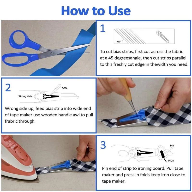 1. Обрежьте полоски смещения по ткани на 45, а затем обрежьте полоски параллельно этой свежевырезанной кромке в нужной вам ширине.