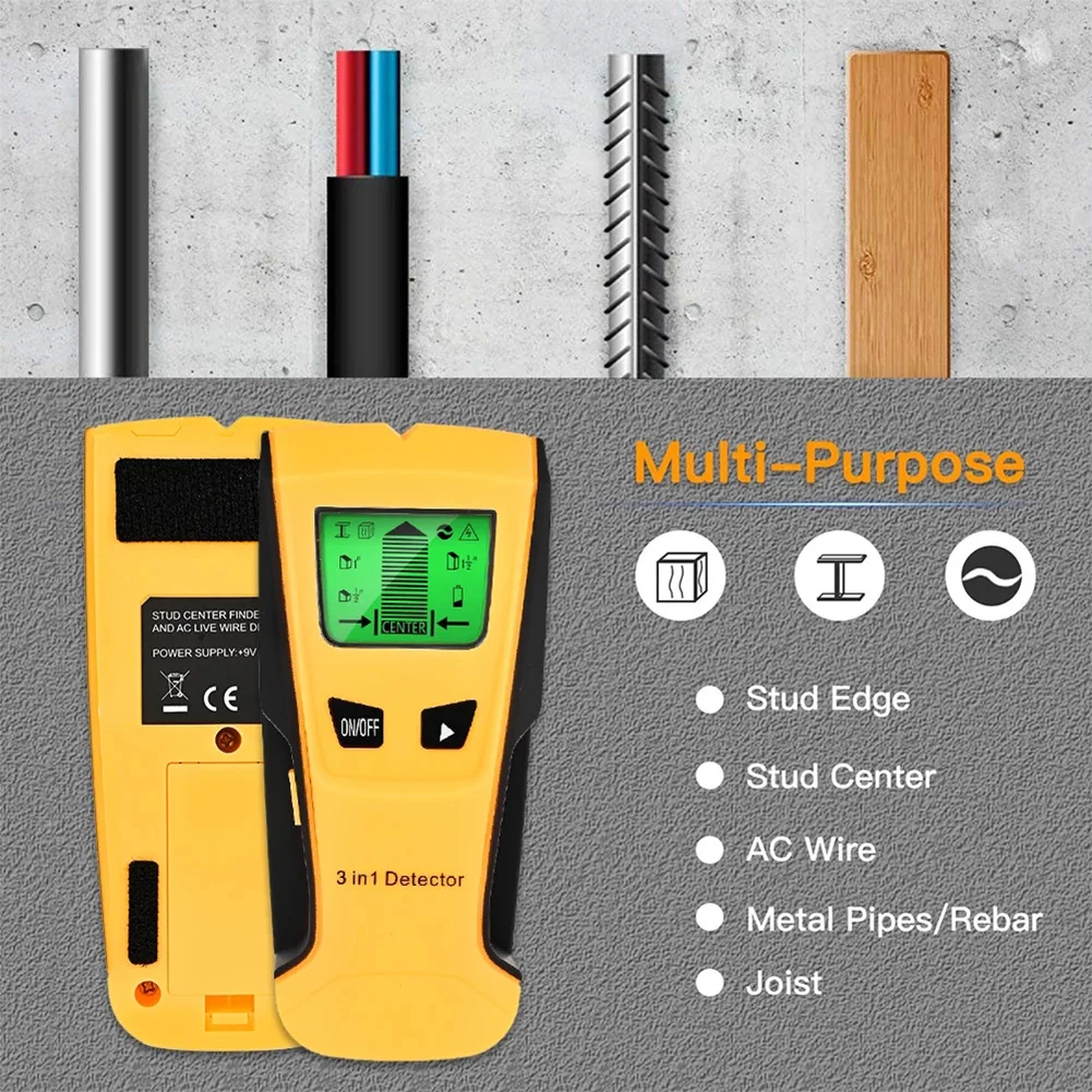*1. 3-in-1 wall scanner integrates 5 scanning modes, including 1/2"(13mm) stud scan, 1"(25mm) stud scan, 1-1/2"(38mm) stud scan, 2.36"(60mm) metal scan, and 2"(51mm) AC scan.