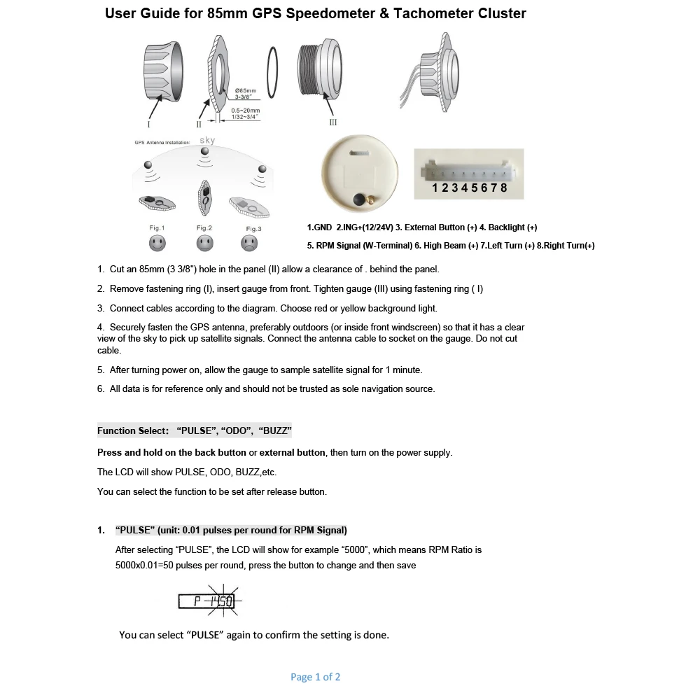 -Диапазон скорости: 0 ~ 200 км/ч или 0 ~ 125 км/ч