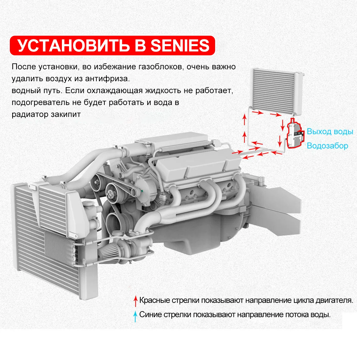 Предварительный нагреватель использует источник питания 220 В для циркуляции и нагрева антифриза через встроенный насос и электрический нагревательный компонент для улучшения температуры двигателя.