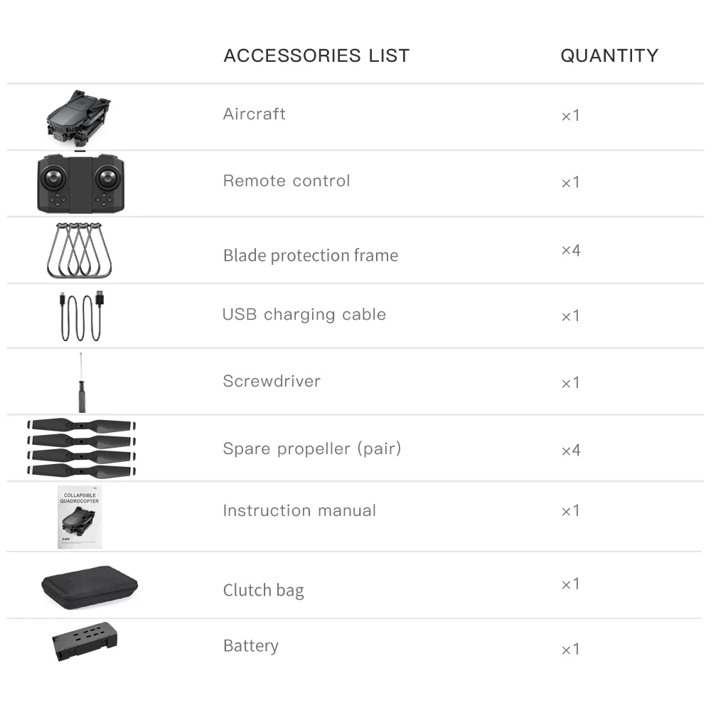 Функции: вверх/вниз, вперед/назад, влево/вправо, боковой полет, трехуровневая скорость полета, светодиодные фонари, Безголовый режим, режим удержания высоты, WiFi FPV, траектория полета, камера фото/видео