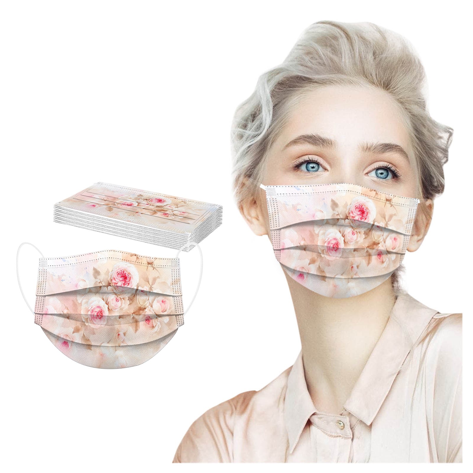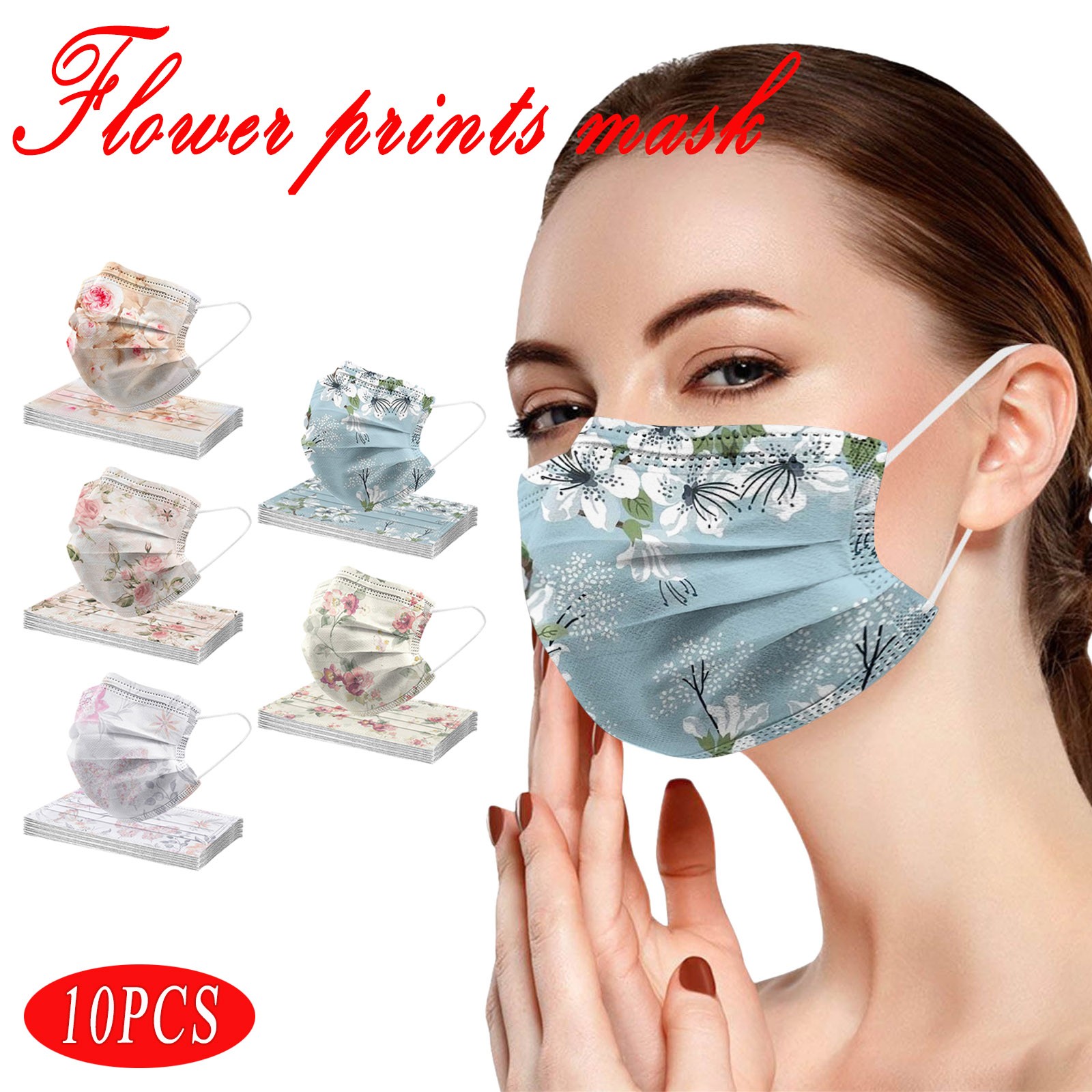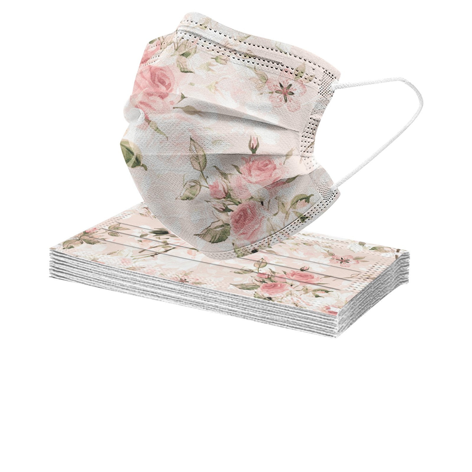 10 шт. взрослых ежедневная красивый кардиган, с цветочным принтом, 3-Слои одноразовая маска для лица