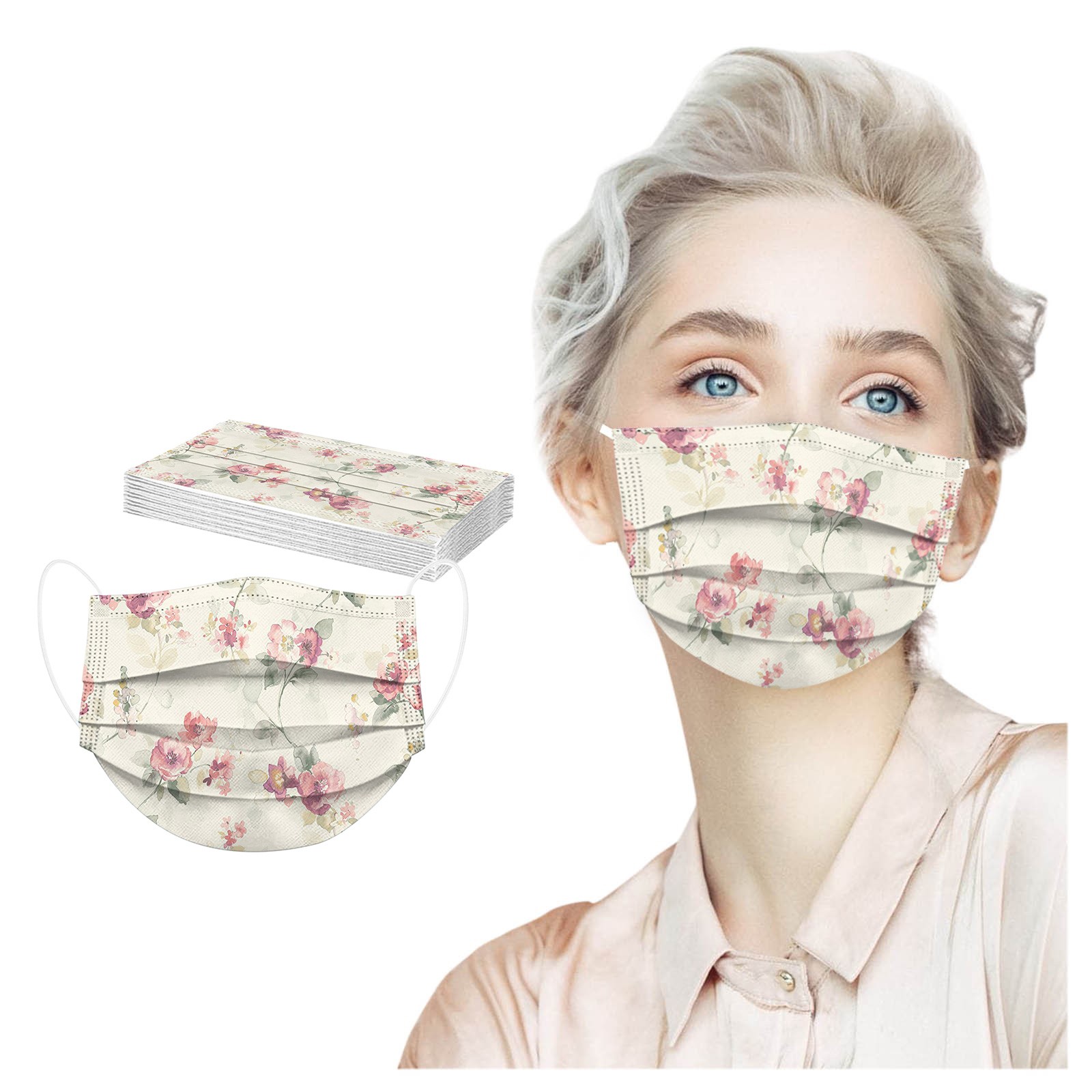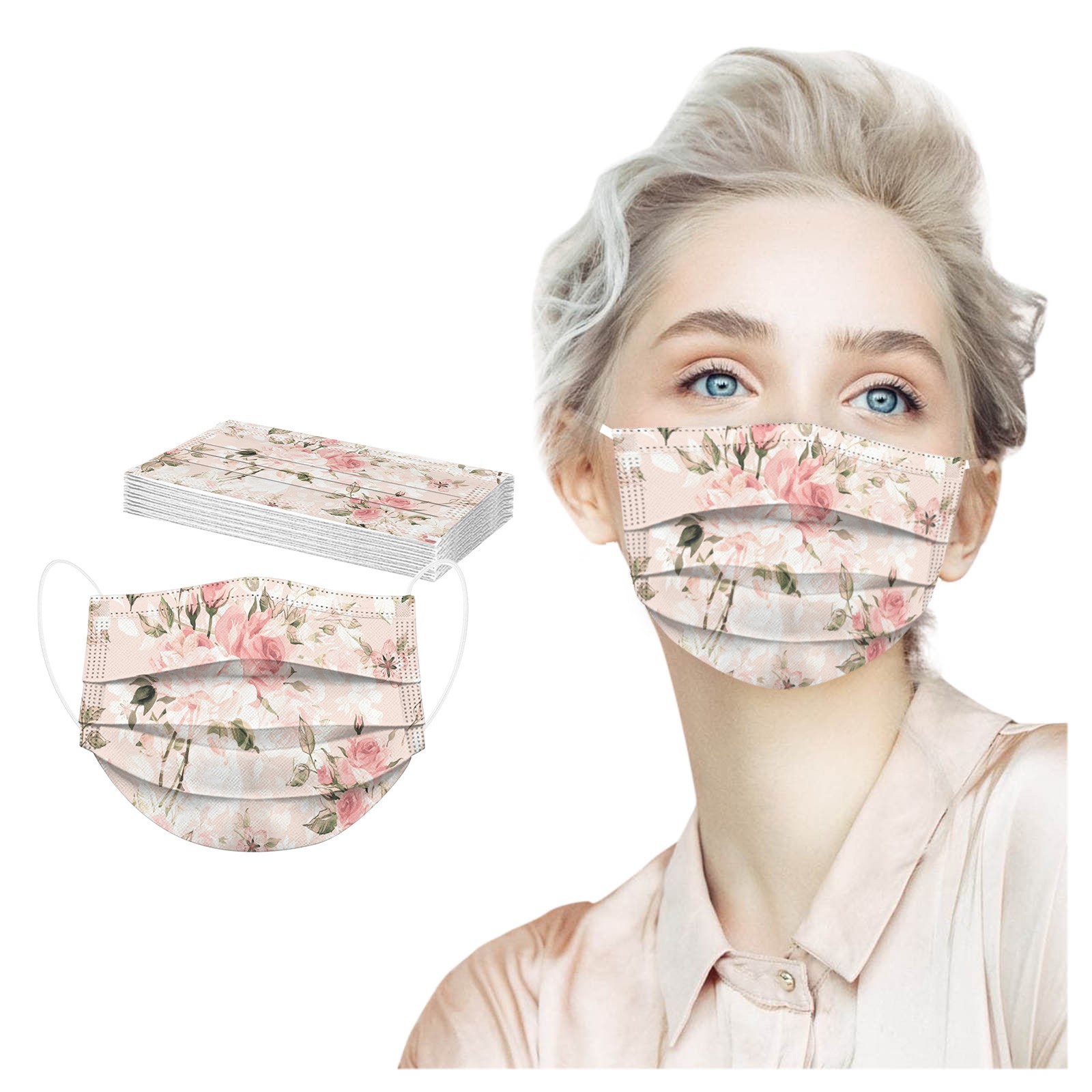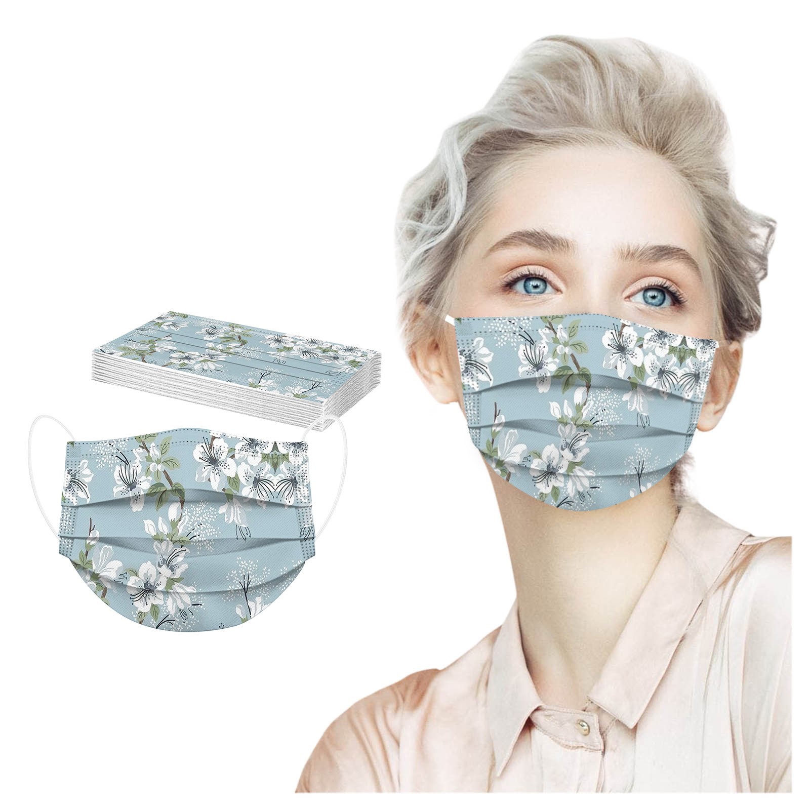 10 шт. взрослых ежедневная красивый кардиган, с цветочным принтом, 3-Слои одноразовая маска для лица
