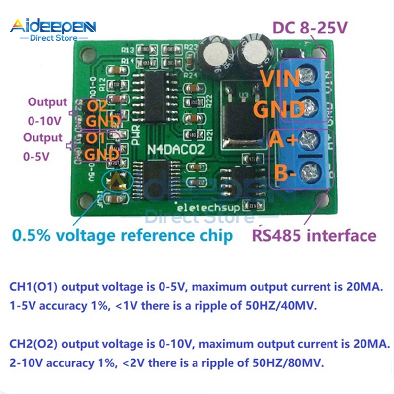 1 * N4DAC02 12-25V 2 канал ПВМ DAC RS485 модуль