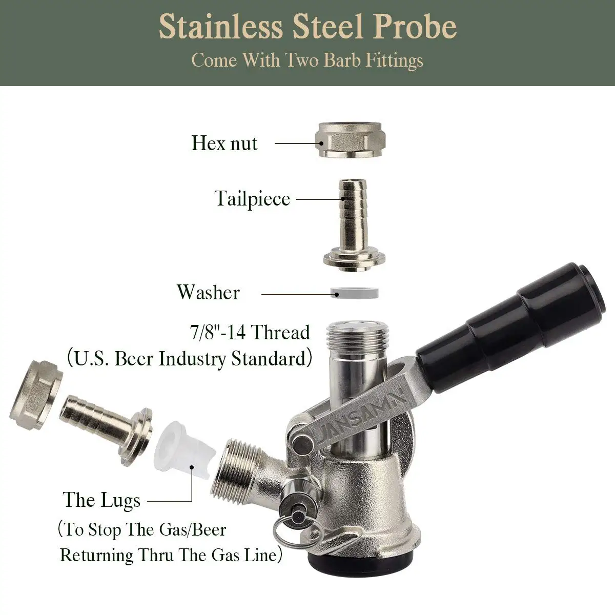 Зонд из нержавеющей стали★Зонд Sankey Keg Coupler изготовлен из нержавеющей стали, которая не изнашивается с течением времени, и ваше пиво не будет ароматом. Корпус Муфты Keg изготовлен из хромированной латуни★Нажмите для американского Kegs или Sankey Keg★Муфта для бочонок-это краны для бочонок d-системы. Идеально вписывается в американский kegs/sankey keg. Great sankey d МУФТА для замены старого крана, который протекал и трудно получить на★Поставляется с набором из двух частей и зажимом для шланга★Муфта для бочонка sankey G5/8 нитей (стандарт пивной промышленности США). Эта d МУФТА имеет 3/8 "OD газ/Пиво задняя часть, чтобы соответствовать 5/16" ID шланг★Простота в использовании и блокировке★Вам также нужен газовый баллон/регулятор/пивной кран/шланг, чтобы получить газ от регулятора к муфте и доставить ваше пиво. А затем нажмите на муфту sankey для бочонка, вытяните ручку, а затем вниз, чтобы зафиксировать★С клапаном сброса давления★Клапан сброса давления keg tap coupler автоматически открывается около 53 psi