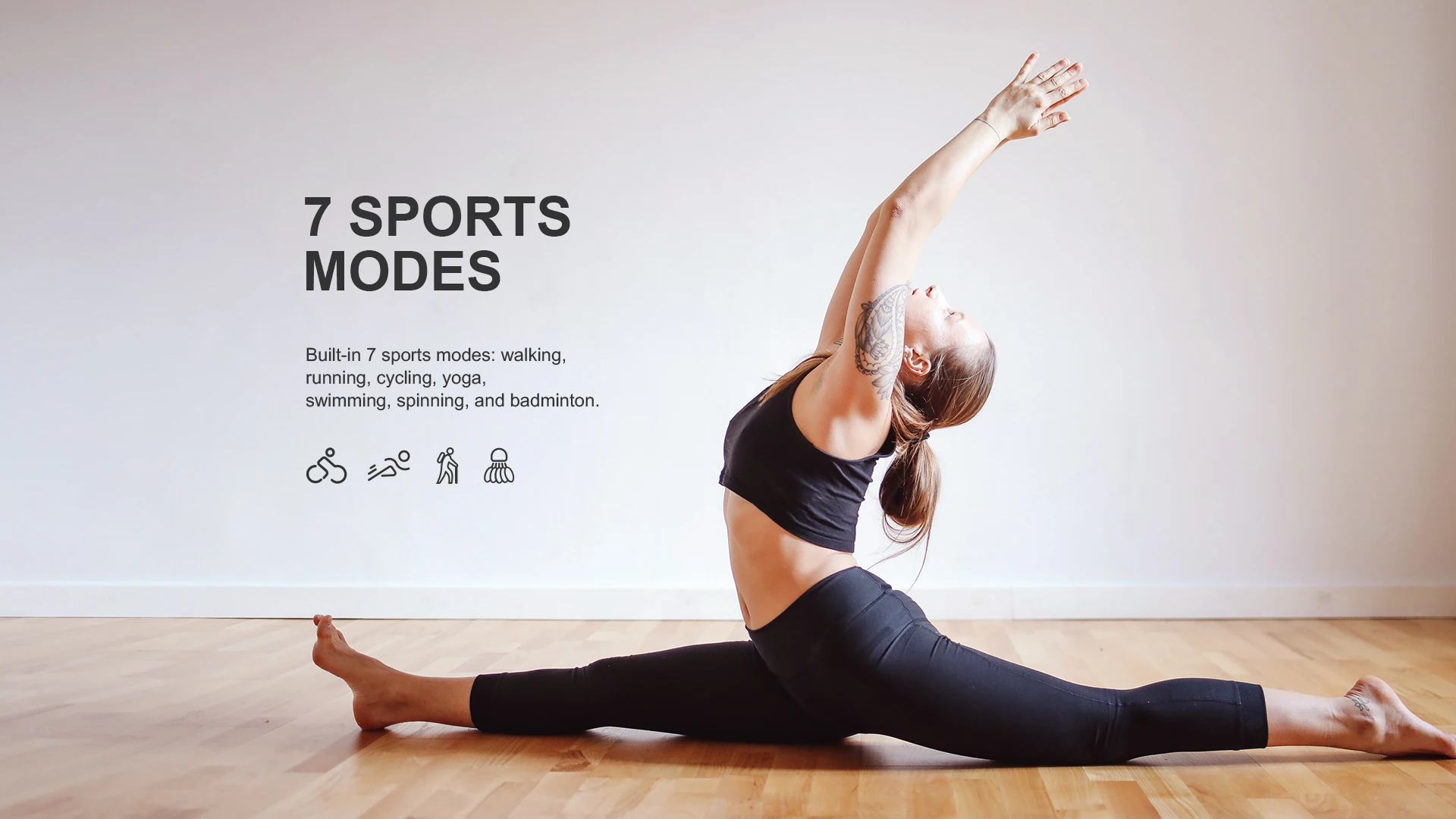 Встроенный 7 спортивных режимов: ходьба, бег, Велоспорт, Йога, плавание, спиннинг и бадминтон.