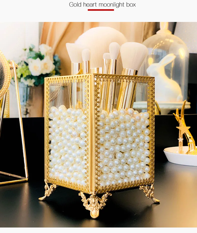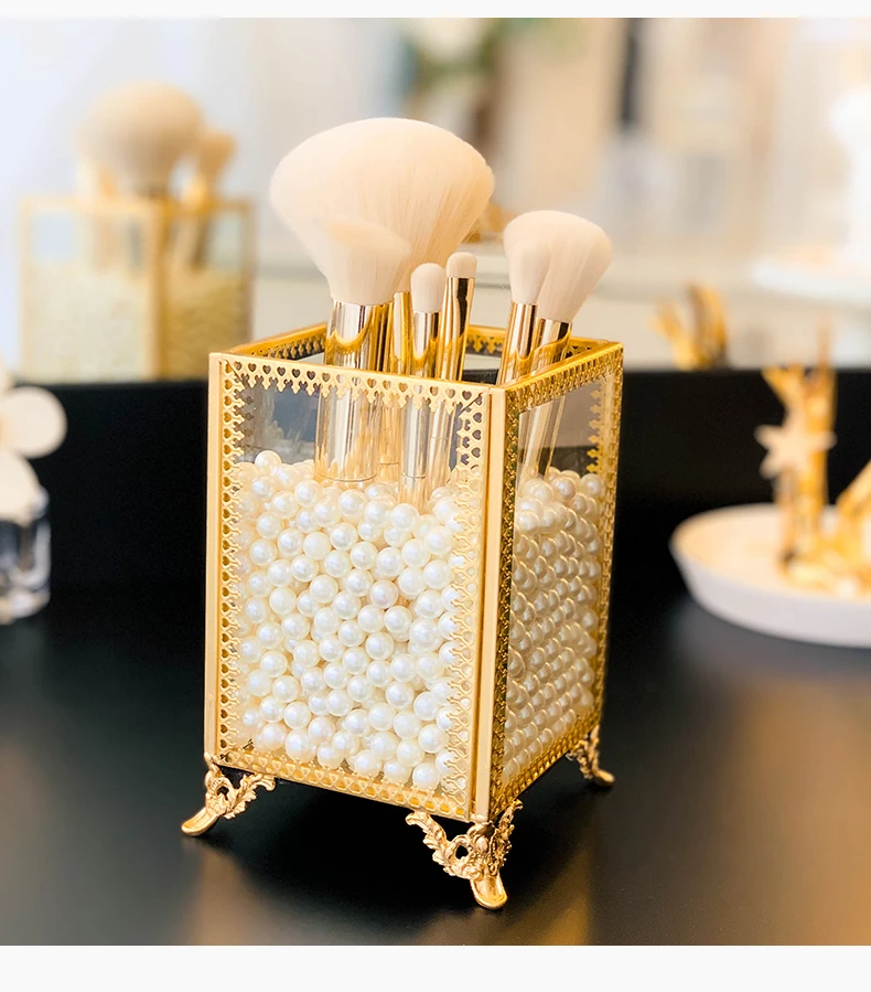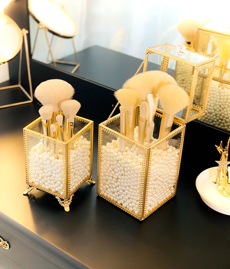 Органайзер для макияжа, прозрачная стеклянная кисть для красоты, трубка, карандаш для бровей, губная помада, настольная отделка, жемчужная коробка для хранения ювелирных изделий