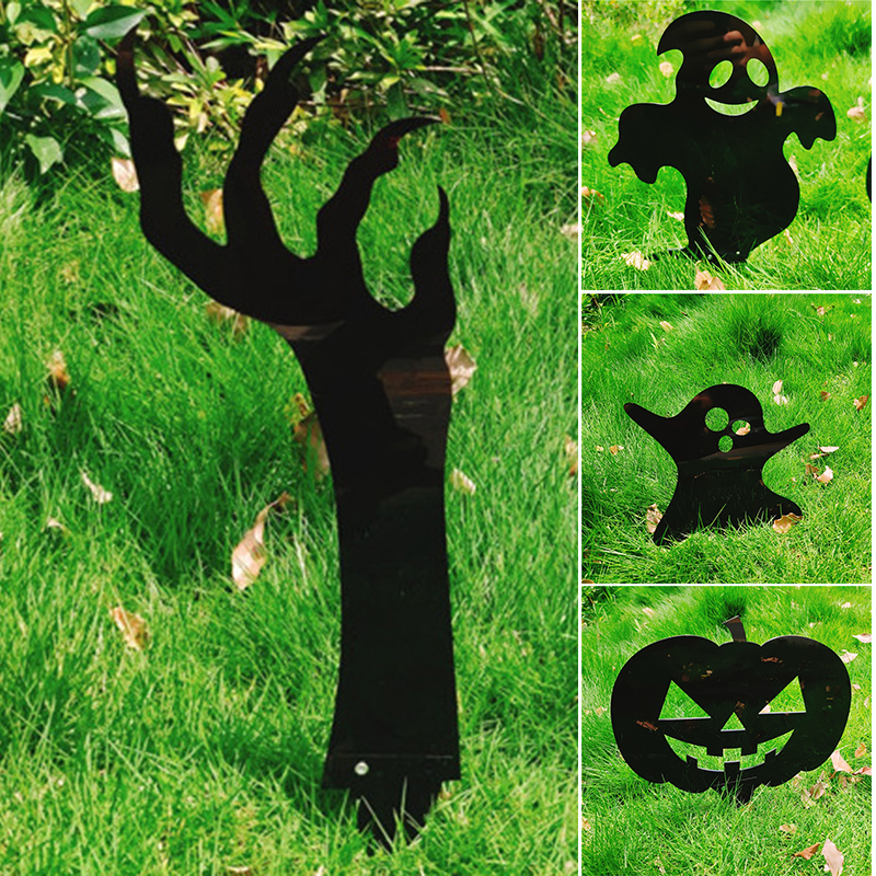 2. Наружные украшения для сада на Хэллоуин: очень подходит для одевания вашего Хэллоуина на открытом воздухе. Он изготовлен из металла и оснащен стабилизирующими сваями для поддержания стабильности. Внешняя поддержка не требуется.