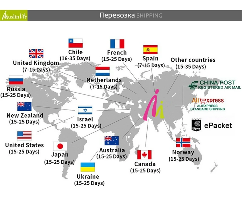 О: DHL/ UPS/ Aramex около 8-10 дней. Fedex около 3-5 дней. AliExpress Стандартная доставка около 25-45 дней. Почта Китая обычный маленький пакет плюс около 45-60 дней.