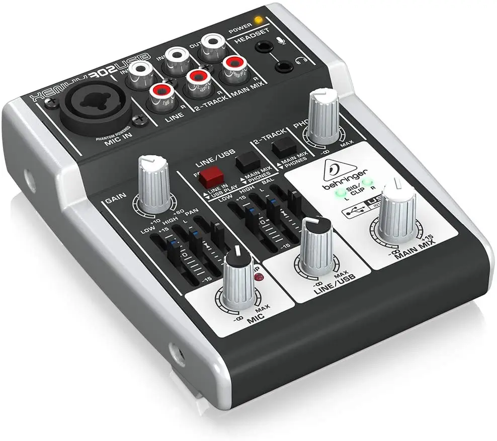 Хорошо иметь питание через USB. Звук микрофона заметно тише, чем от моего ранее Behringer UB802 mixer. Это аудиокласс USB1.1, совместимый с 16 битами/48 кГц. Работает как с Linux, так и с Windows, драйвер не нужен. Это «Спальня» или портативный миксер, а не официальная студия. За исключением полноразмерного разъема для микрофона XLR/ 1/4 ", входы и первичные выходы используют несбалансированные разъемы RCA. Есть 1/8 "(3,5 мм) гнезда для наушников и запасной микрофон. Это определенно периферийное устройство для ноутбука.
