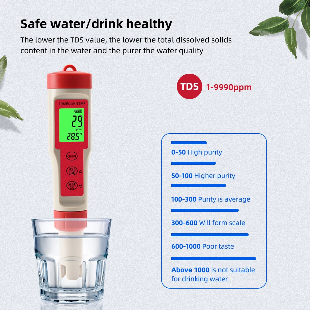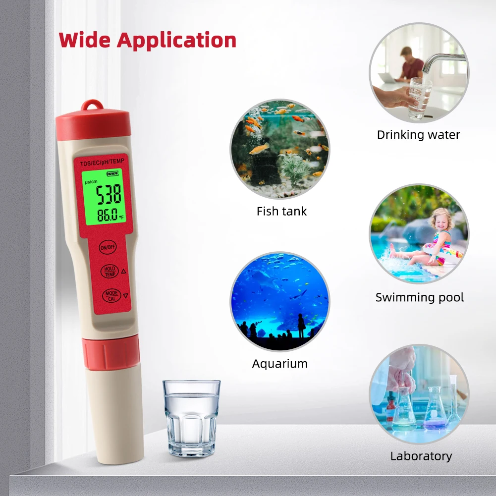 4 в 1 TDS/PH/EC/измеритель температуры подсветка