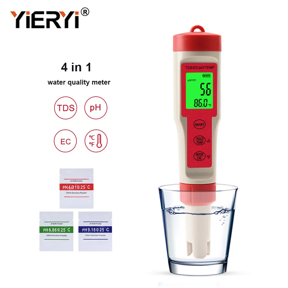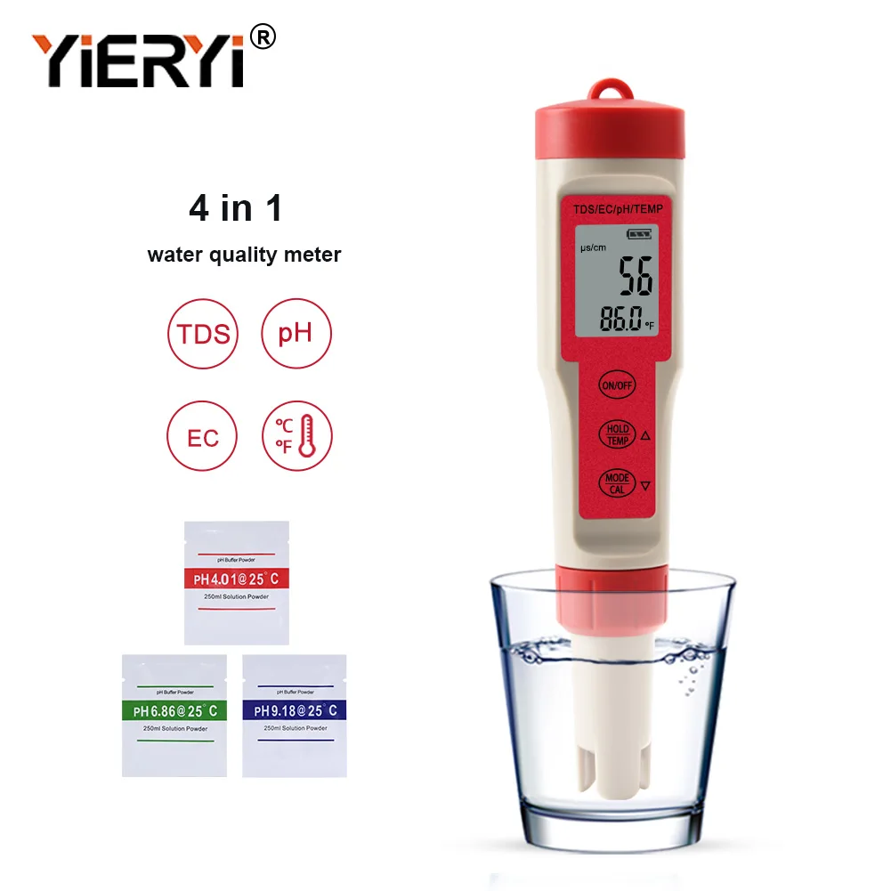 Yieryi EC рН-метр PH/TDS/EC/измеритель температуры цифровой монитор качества воды тест er аквариумы проводимость тестовая ручка матовая панель