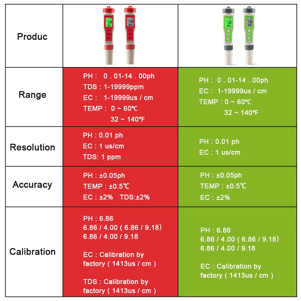 3. Точность: pH: +/-0,01 pH; TDS/EC: +/-2%; Температура: 0,5 ℃