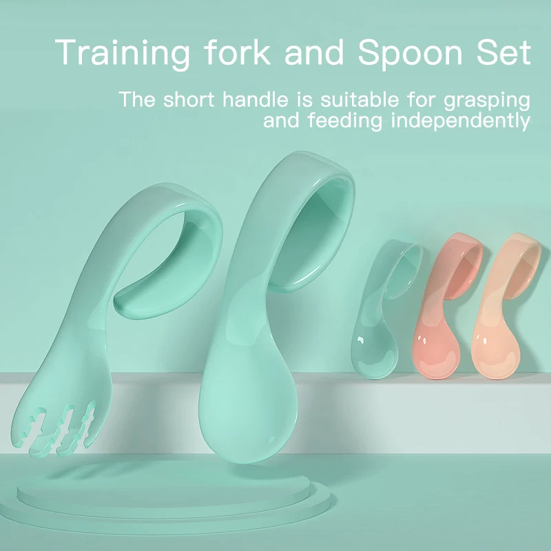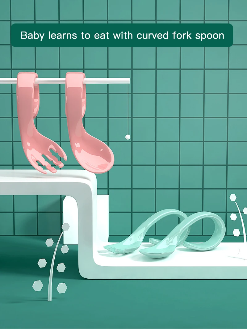 Эргономичная изогнутая ручка, когда ребенок учится есть, попробуйте использовать изогнутую ручку, чтобы удовлетворить пищевую осанку ребенка
