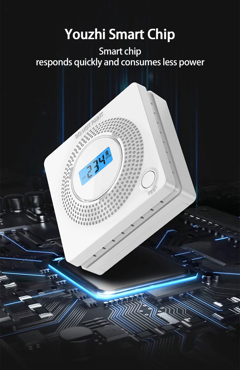 Это устройство представляет собой приложение Tuya Wi-Fi с питанием от аккумуляторов и угарным газом с усовершенствованным электрохимическим датчиком для бытового использования. Обратите внимание, что это устройство не обнаруживает дым, тепло, пламя или другие опасные Газы.