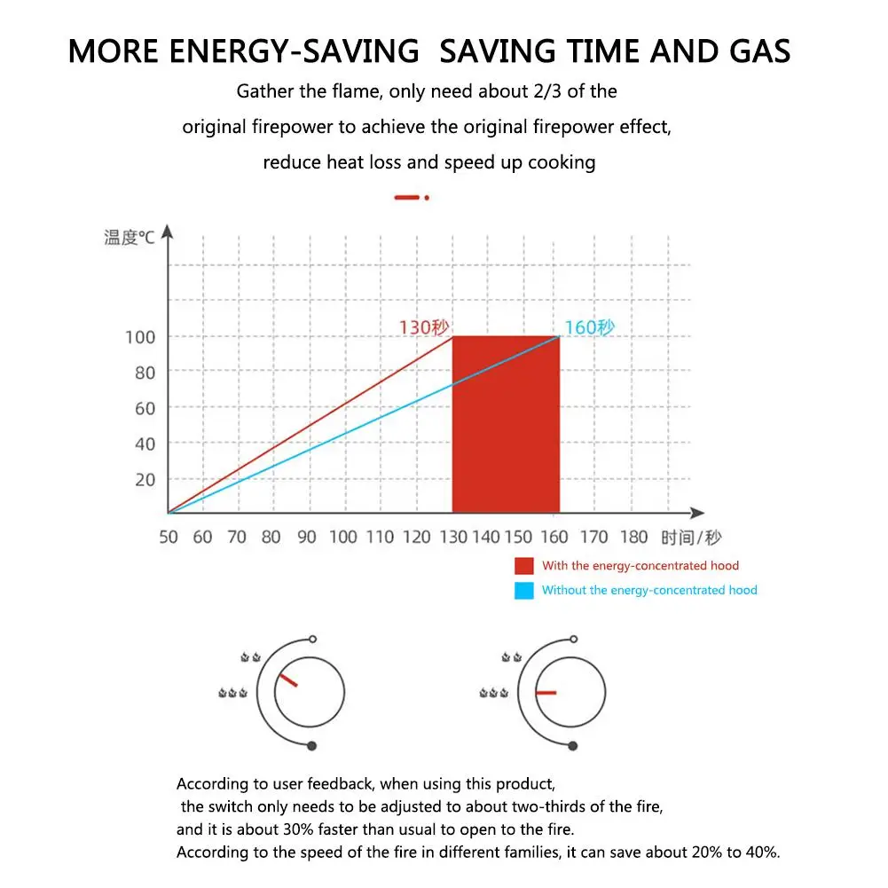 5. Энергосбережение: с кронштейном для защиты от ветра газовой плиты огонь может быть сконцентрирован и не рассеян, и тепло заблокировано. Для достижения оригинального эффекта огневой мощи требуется всего лишь около 2/3 от оригинальной огневой мощи, чтобы уменьшить потери тепловой энергии и ускорить скорость приготовления пищи.