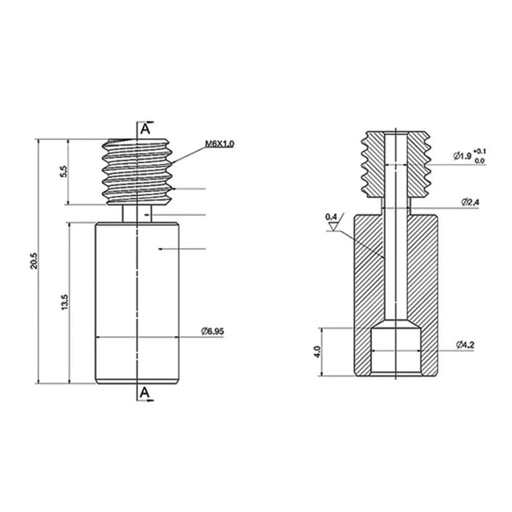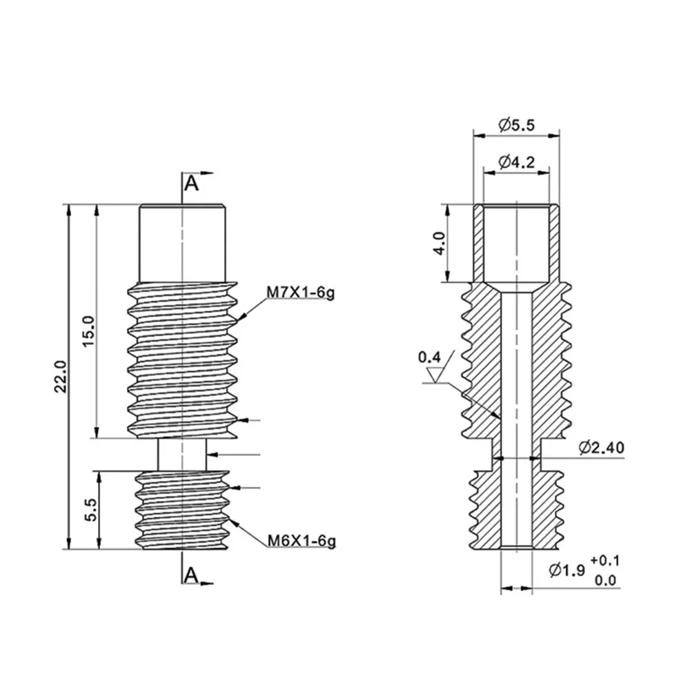 Размер: длинная резьба часть M7, короткая резьба часть M6, эта труба используется для 1,75 мм V6 Hotend нагреватель