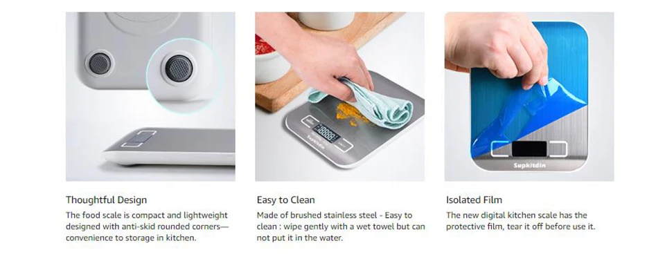 Пищевые весы поставляют виды способов измерения: g/oz/lb/kg/ml, также включают молоко мл и воду мл. Даже включая фунт тары, делая контейнер без дополнительного веса.