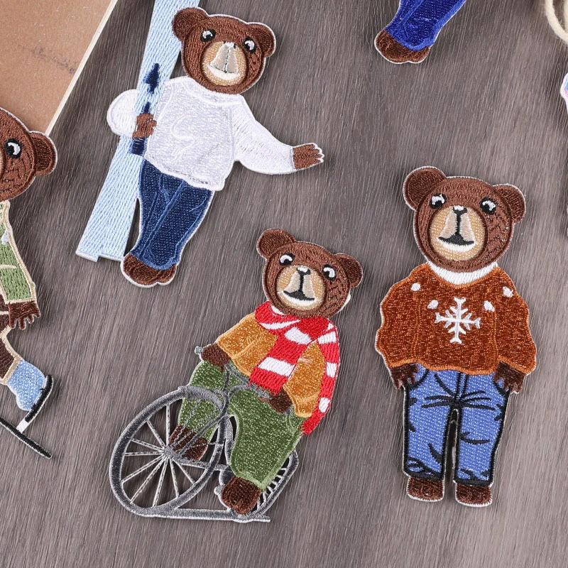 Детская одежда джинсы Швейные наклейки мультяшный медведь узор патч Вышивка Сделай Сам значок наклейки декоративные аксессуары