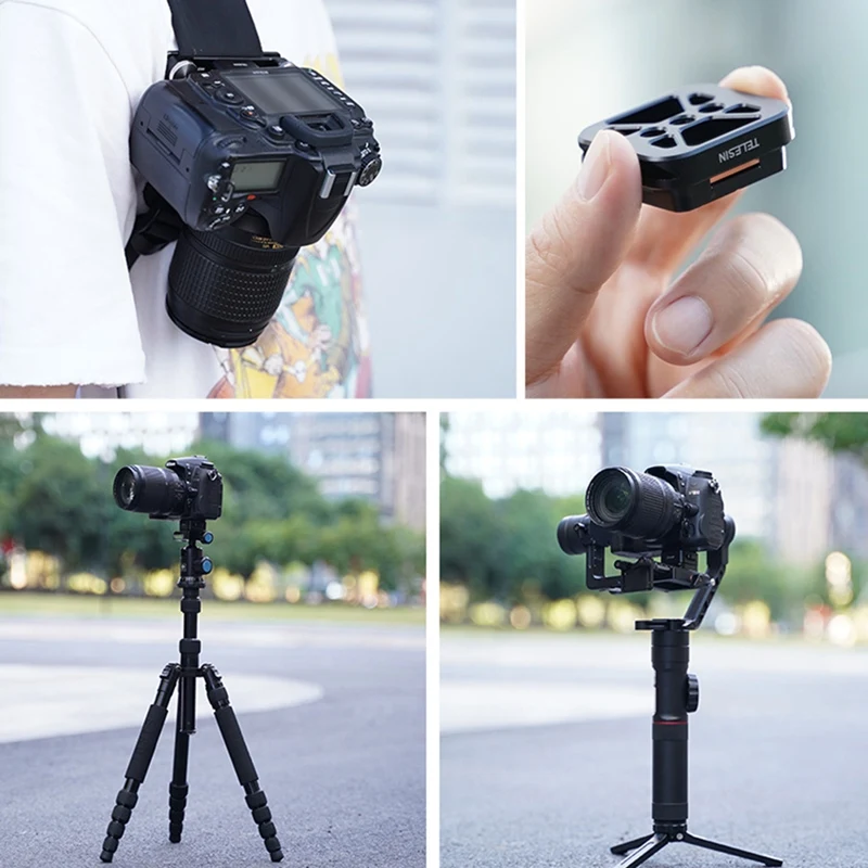 Быстрое крепление основания оснащен Arca интерфейс и three 1 / 4 Винтовых отверстий, которые могут увеличиваться камеры, стабилизатор штатив-Трипод и стандарту Arca оборудование