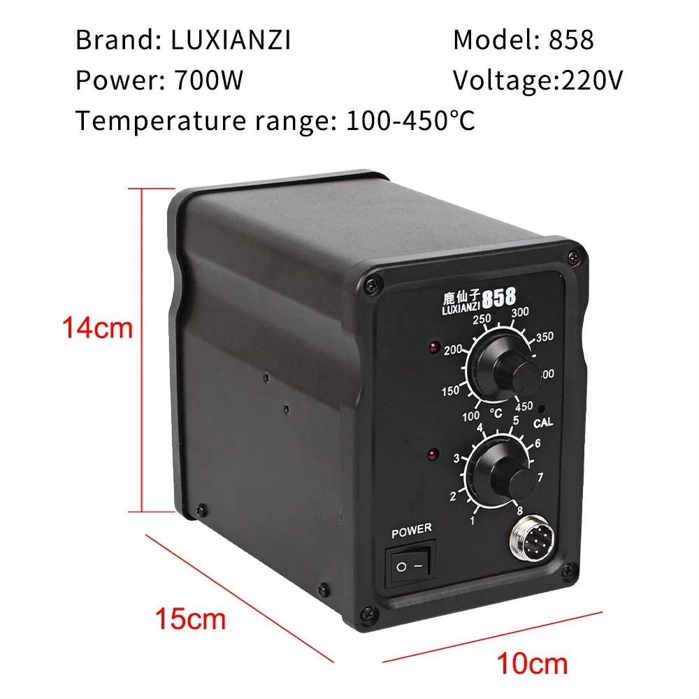 Диапазон температур: 100 ℃ ~ 500 ℃ (858D +) / 100 ℃ ~ 450 ℃ (858)