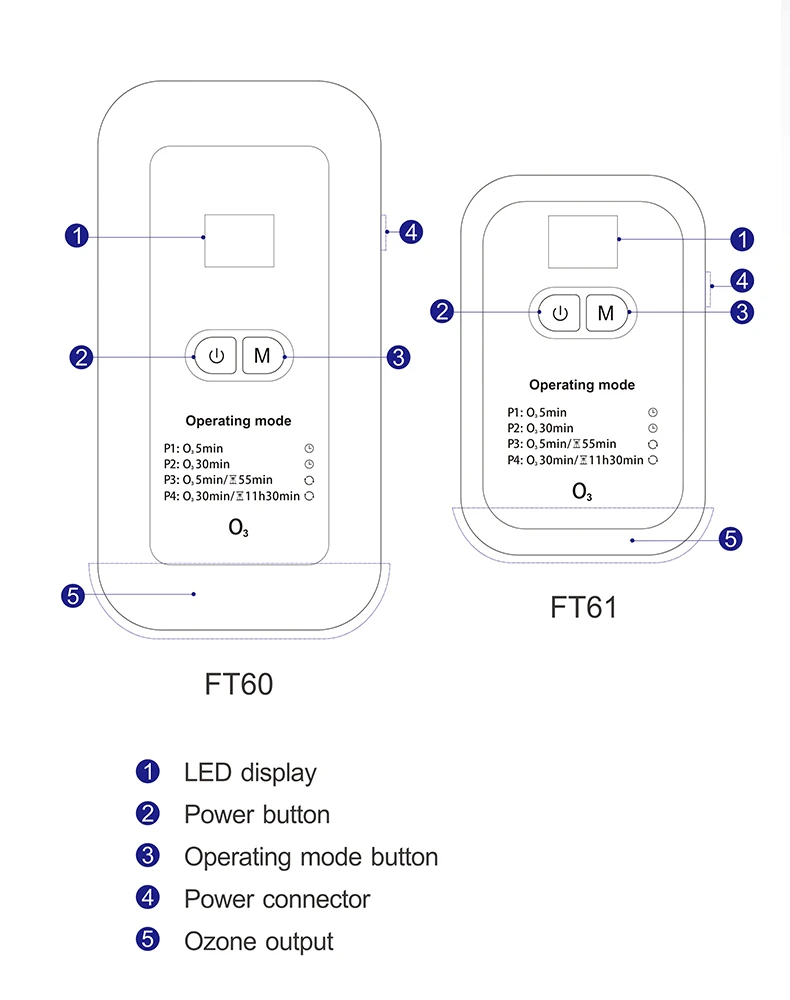 Mode 1 (The indicator light is blue breathing light) : After power on, enter the cycle mode, work for 10 minutes and stop for 6 hours, and then stop for 6 hours for every 3 minutes.
