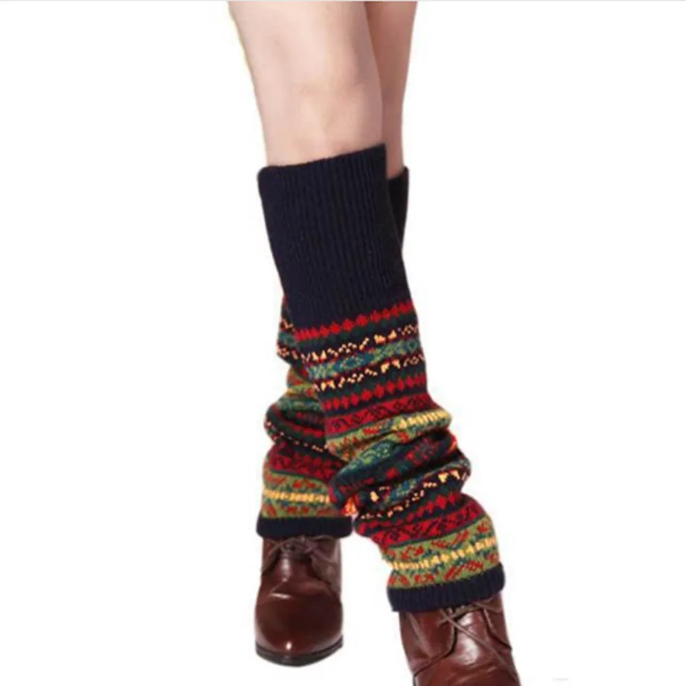 Женские зимние утепленные вязаные гетры; Гетры с манжетами; Гетры в богемном стиле; ST015