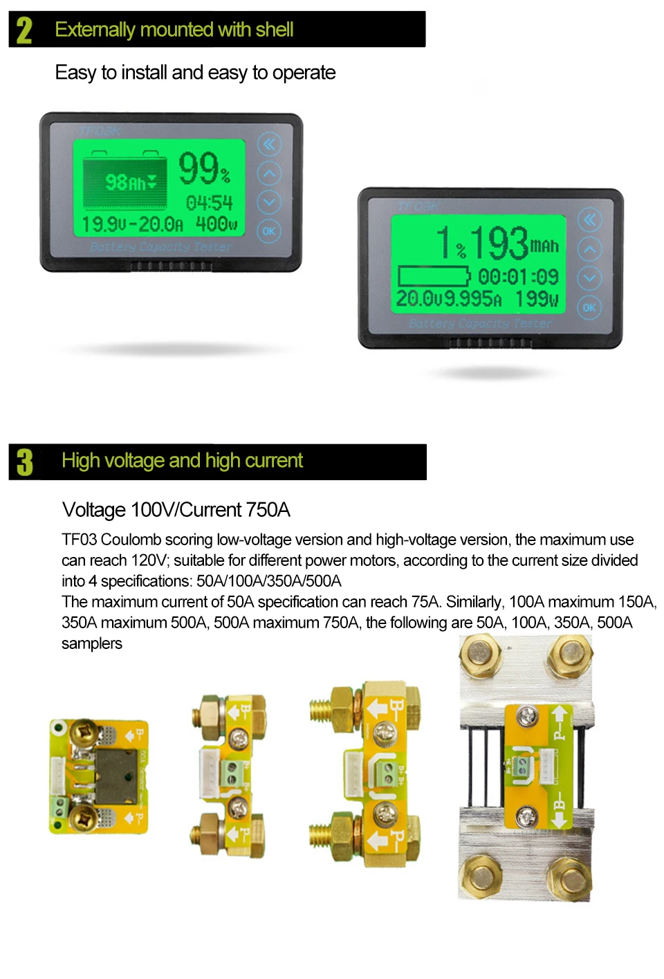 Кулонометр 10-120 В, 50 а/А, кулонометр, профессиональный тестер емкости автомобильного аккумулятора, напряжение, ток постоянного тока, дисплей