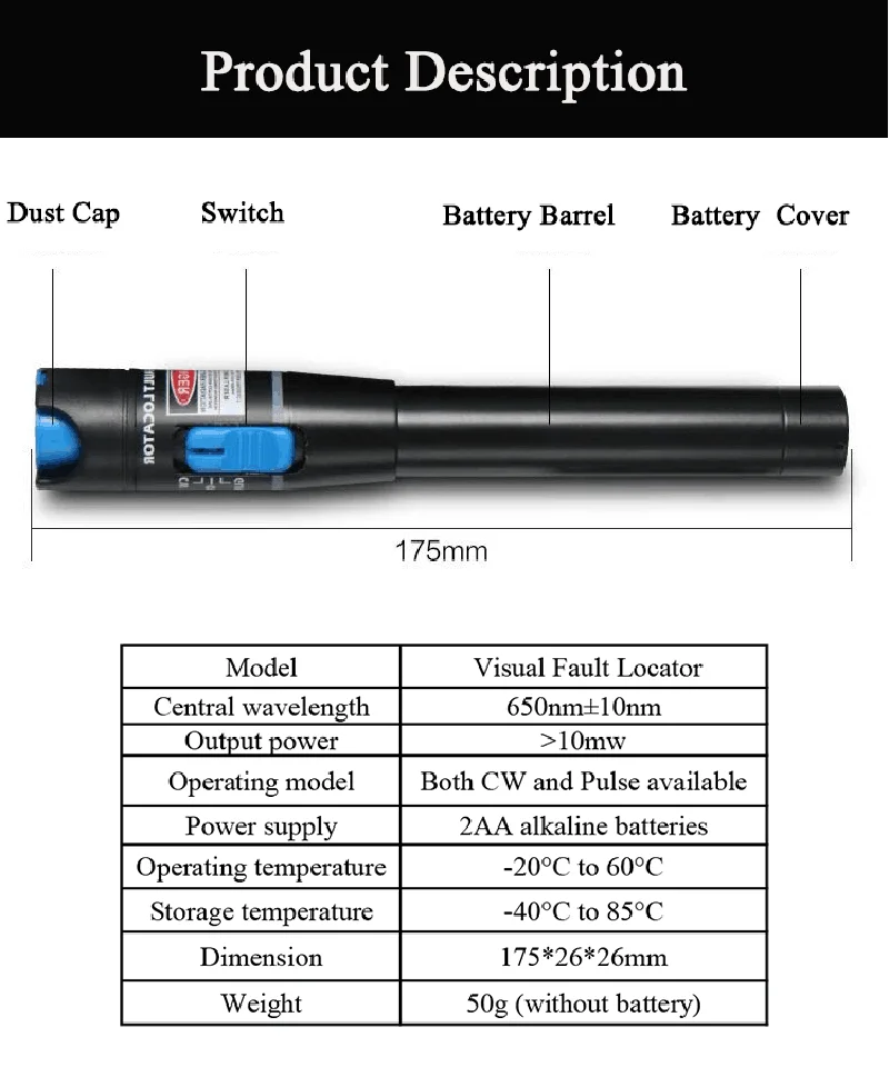 Описание товараВизуальный дефектоскоп 1 мВт 10 мВт 20 мВт 30 мВт красный лазерный светильник Тестер Волоконно-Оптического КабеляВолоконно-оптический визуальный дефектоскоп принимает лазерный диод 650 нм как светильник, излучающий устройство, выходная мощность может быть до 1 мВт-20 МВт. Применяется для измерения одномодового или многомодового волокна. В то же время, вы можете использовать SC / ST адаптер и не нужно настроить интерфейс преобразования Кроме того, он может дополнительно подключить все часто используемые соединения. Это идеальный инструмент для тестирования различных типов волоконно-оптического патч-корда, ленты, Пучок волоконно-оптического свиного хвоста и поддерживать различные волоконно-оптические линии для вас.
