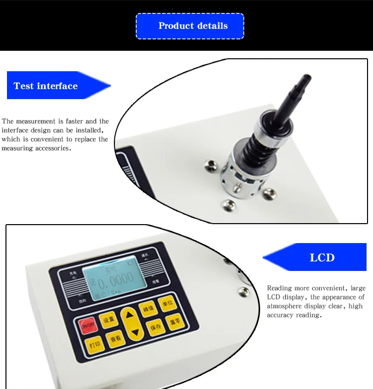 2. Он главным образом используется в тестировании и калибровке различных видов электрических пневматических отверток, крутящий момент динамометрического ключа, все виды продуктов относятся к испытанию винтовой вниз силы, части torsion разрушительного тестирования и т. Д.