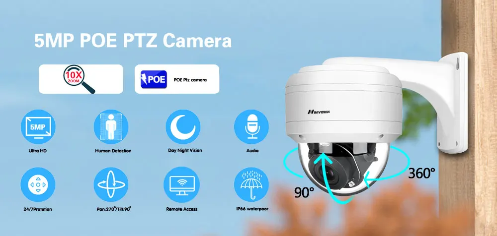 10X 5MP POE IP PTZ Camera Optical Zoom Dome Outdoor Weatherproof For POE NVR H.265 Security Camera Night Vision 80m P2P